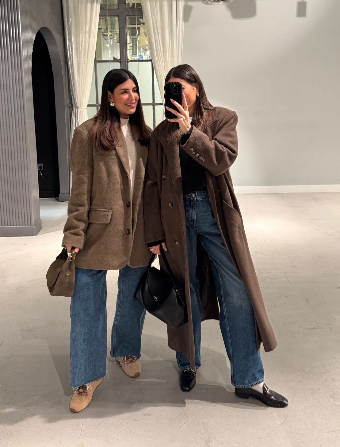 An exciting day out, we headed to the ASOS office to preview new arrivals and film some new-season content - keep an eye on our socials, it’ll be landing soon! We both went for head-to-toe tonal looks, mixing pieces from ASOS, Topshop and WAT. Sarah kept things relaxed with a knit layered under a brushed blazer, styled with denim, a slouchy bag and sneakers. Philippa opted for a classic base of a T-shirt and knit, layered with a coat and denim, finished with a structured bag and loafers.